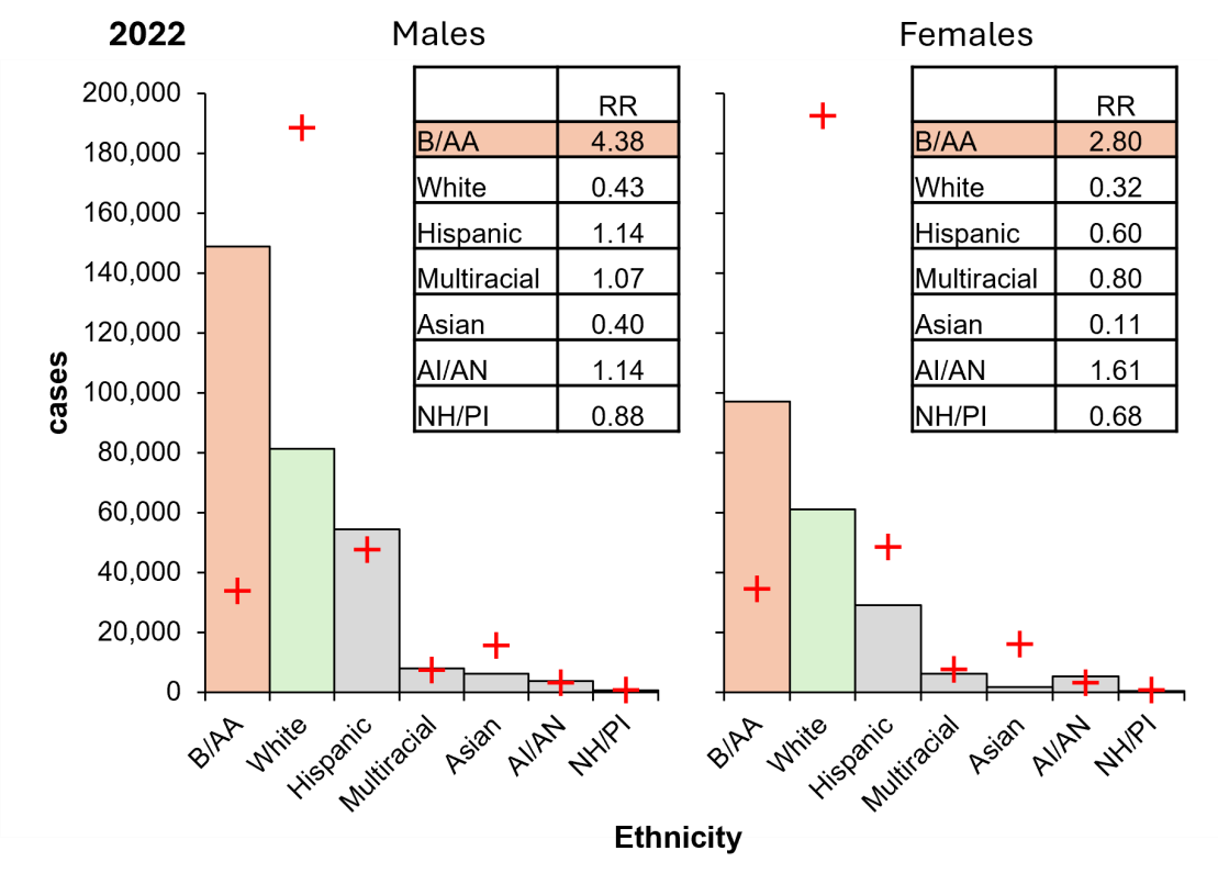 Figure 6: The US Black/African American population carries a disproportionate burden of gonorrhoeal cases in 2022.