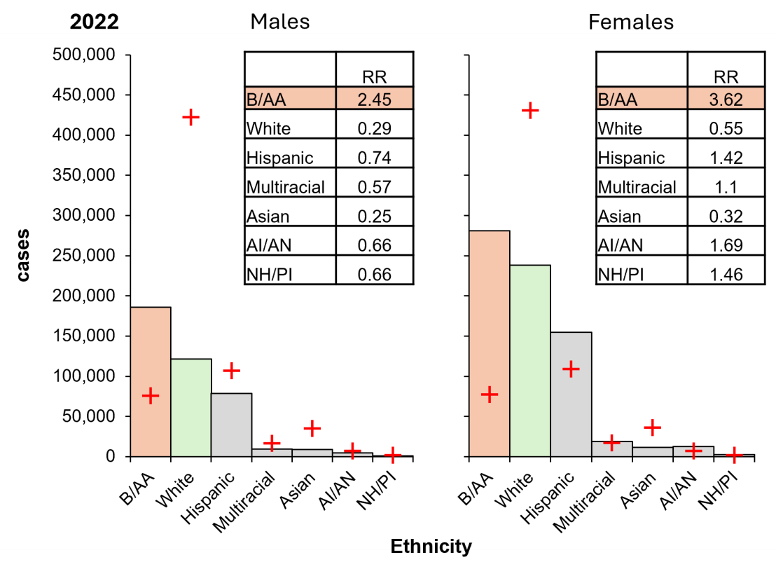 Figure 7: The US Black/African American population carries a disproportionate burden of chlamydia cases in 2022.